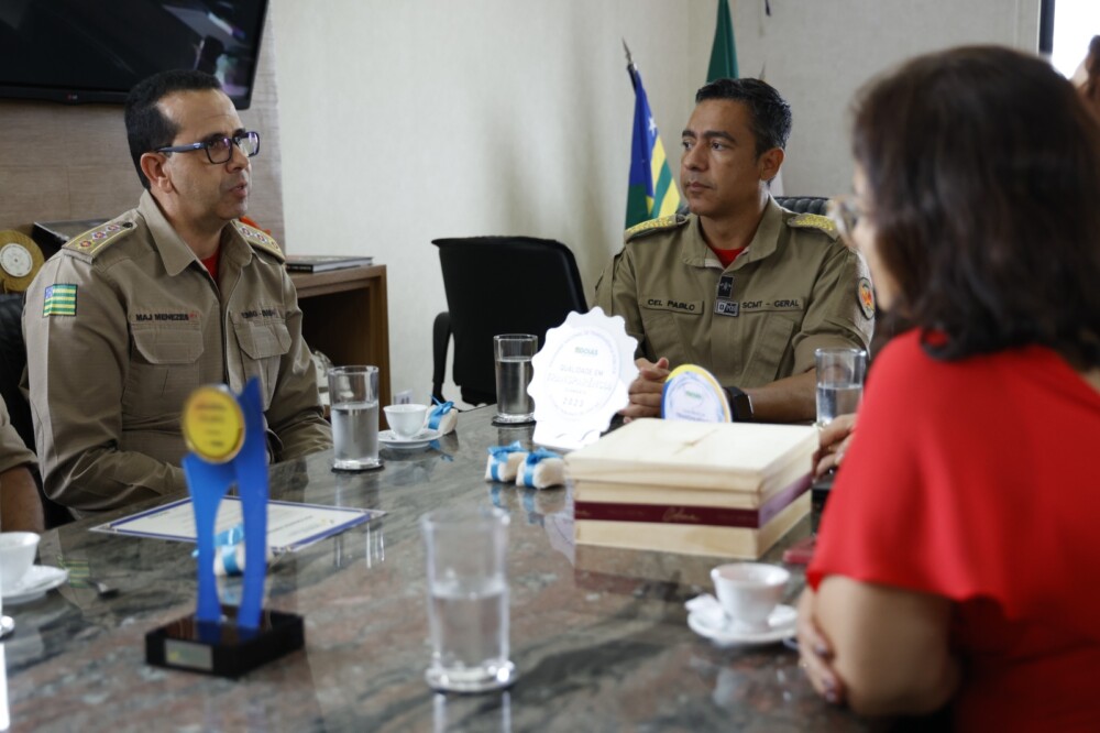 As servidoras foram recepcionadas pelo Subcomandante-Geral do CBMGO, Coronel Pablo, e pelos representantes do Escritório de Compliance do CBMGO, Major Menezes, Cap Sanjay e Cap Almeida, que executam as atividades dos prêmios estabelecidos pelo programa.