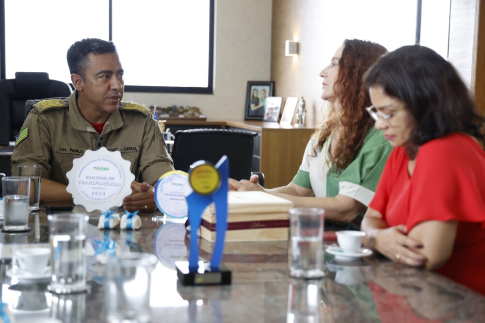 O CBMGO recebeu, nesta quarta-feira, a visita da gerente de Auditoria do Programa de Compliance Público (PCP) da Controladoria-Geral do Estado (CGE), Lucimar Prado e Silva, e Elizangela Abreu Vasconcelos, servidora da Gerência de Auditoria em Gestão de Riscos, que trouxeram os prêmios referentes a 2023 e 2024 do Programa Nacional de Transparência Pública.