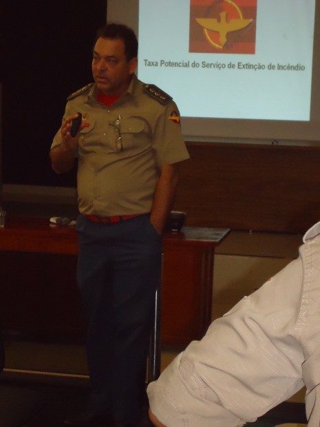 A 10ª Companhia Independente Bombeiro Militar (10ª CIBM), em Planaltina, recebeu na quarta-feira, dia 24, visita do Coronel Luís Antônio, Tenente-Coronel Nolasco e da Capitã Helaine, que vieram ministrar palestra para os militares, contadores e comerciantes locais sobre a Taxa Potencial do Serviço de Extinção de Incêndio. A palestra foi realizada no auditório da Câmara Municipal de Planaltina. Na oportunidade foram abordadas questões como: qual será a destinação da taxa, como ela será cobrada, os valores a serem pagos, como utilizar o sistema no site do CBMGO etc. Ao final da palestra, todos puderam tirar as suas dúvidas e houve uma confraternização.