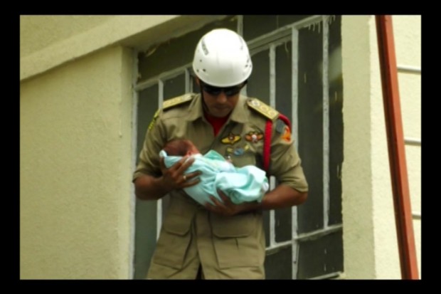 Na última edição do Fantástico, da TV Globo, uma reportagem mostrou detalhes da ação do Corpo de Bombeiros Militar do Estado de Goiás (CBMGO) durante o combate a um incêndio em um apartamento no Setor dos Afonsos. A ocorrência foi ao meio dia de quarta-feira, dia 20. O 8º BBM foi acionado pelo telefone de emergência 193 para combater o incêndio que começou no terceiro andar do prédio. Ao chegar ao local, os Bombeiros constataram que uma senhora e um bebê recém-nascido de 14 dias estavam presos em um apartamento do quarto andar. Pela quantidade de fumaça existente, a senhora ficou desesperada e não conseguia sair do apartamento com seu bebê. Pela janela, ela gritava por socorro.