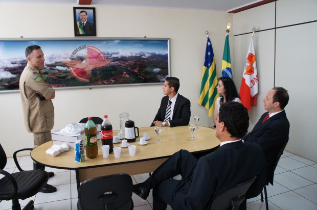 O 6º Batalhão Bombeiro Militar, de Itumbiara, recebeu na quinta-feira, dia 28, a visita do Secretario de Segurança Publica e Justiça do Estado de Goiás, Joaquim Mesquita. O Secretário conheceu as dependências do 6º Batalhão, assistiu a um simulado de resgate pré-hospitalar e presenciou uma ocorrência de captura de sucuri. Reconhecendo com prestígio a Corporação Bombeiro Militar, o Secretário utilizou, simbolicamente, a capa de aproximação utilizada em combates a incêndio. Ao final da visita, o Comandante do 6º BBM, Tenente Coronel Carossi, entregou uma homenagem, uma estatueta da Corporação, ao Secretário Joaquim Mesquita. O Secretário parabenizou o Corpo de Bombeiros Militar pelos serviços desempenhados na região. Confira fotos da visita: