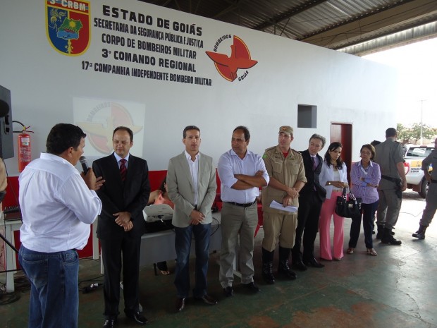 A 17ª Companhia Independente de Bombeiro Militar (17ª CIBM), em Jaraguá, recebeu na tarde de sexta-feira, dia 1º, a visita do Secretário da Segurança Pública e Justiça, Joaquim Mesquita. Ele estava acompanhado de uma comissão de autoridades formada pelo Secretário de Infra-estrutura, Danilo de Freitas, pelo prefeito Ival Avelar, representantes da Polícia Militar, vereadores, da Associação Comercial, além de várias autoridades municipais.