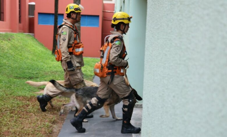 Houve o emprego de viaturas de salvamento, resgate e combate a incêndio, além das equipes especializadas nas buscas com cães e do helicóptero Bombeiro 01.