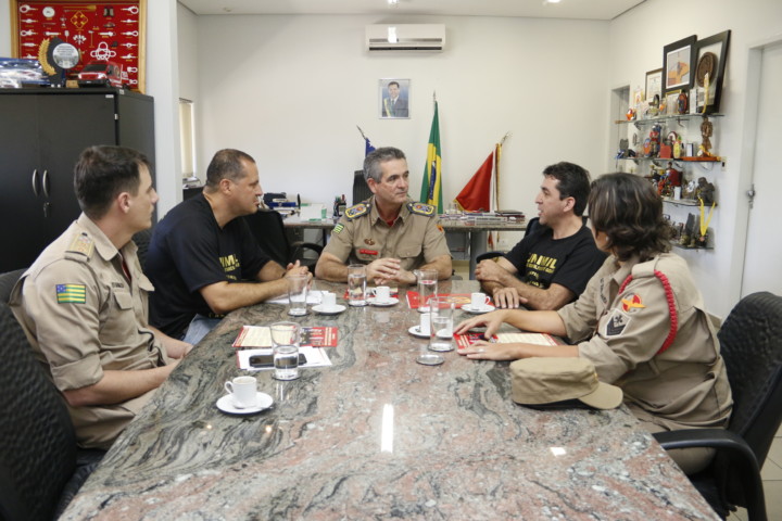 O Comandante Geral do Corpo de Bombeiros Militar do Estado de Goiás, Coronel Carlos Helbingen Júnior, recebeu na manhã desta quarta-feira, 11, representantes da União dos Militares do Estado de Goiás (UNIMIL). Os sargentos Silvana e Braga, do CBMGO, e o vereador Cabo Senna, da PMGO, apresentaram os resultados do trabalho da associação em prol dos militares goianos. Eles também falaram sobre demandas e sobre a relação das entidades de classe com as corporações. “Nosso objetivo é aproximar cada vez mais das associações e ouvir com atenção suas reivindicações. Acreditamos que a união e o diálogo são fundamentais para que todos possam atingir seus objetivos”, destacou o Comandante Helbingen.