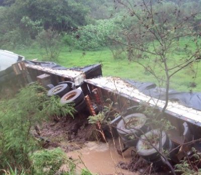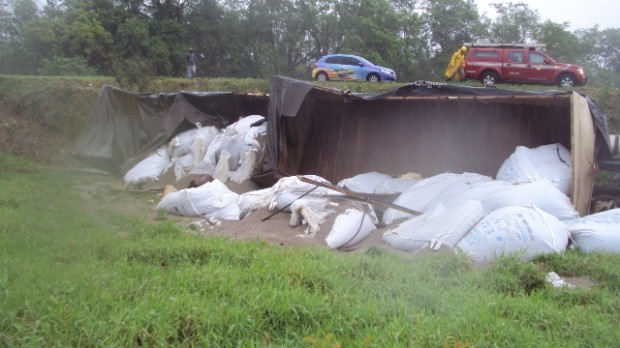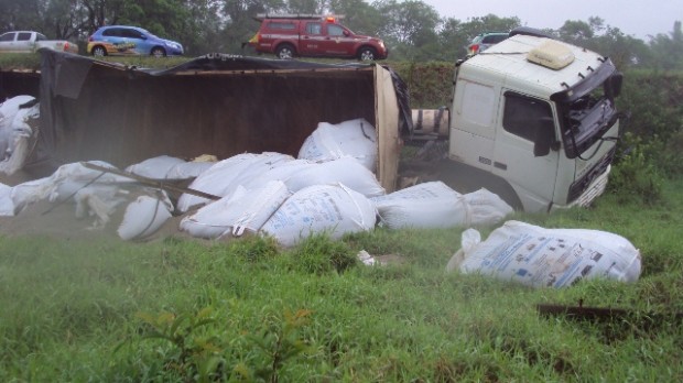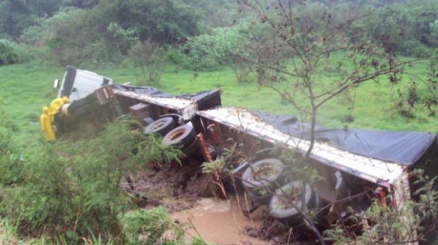 Na tarde de segunda-feira, dia 05, o Corpo de Bombeiros de Mineiros atendeu uma saída de pista seguida de tombamento de um bi-trem, na GO 341 no KM 07. No veículo havia uma família,