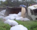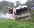 Vítimas de um tombamento de Bi-trem na GO 341 são atendidas por Bombeiros de Mineiros.