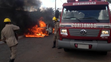 Bombeiros do 22º CIOPS combatem incêndio em veículo e retiram vítima presa às ferragens