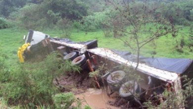 Vítimas de um tombamento de Bi-trem na GO 341 são atendidas por Bombeiros de Mineiros.
