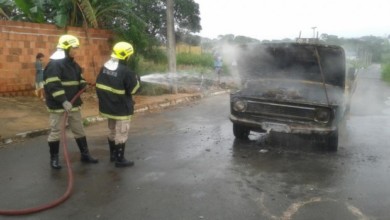 Bombeiros de Aparecida de Goiânia combatem incêndio em veículo no Bairro Vera Cruz