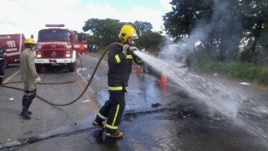 Bombeiros de Cristalina socorrem vítimas de acidente entre três carros e um ônibus na BR-040