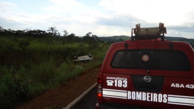 Bombeiros de Cristalina socorrem vítima de capotamento na BR-040
