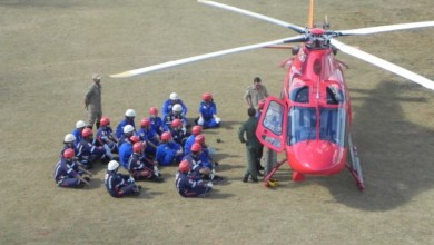 Bombeiros do Coasa participam de instrução sobre reabastecimento do helicóptero