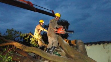 Bombeiros de Luziânia realizam corte de árvore que caiu sobre escola