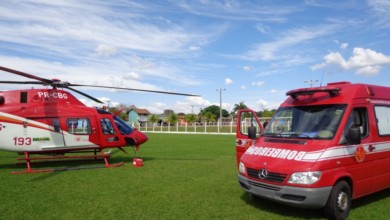 Helicóptero Bombeiro 01 resgata vítima de acidente de trânsito em Aruanã