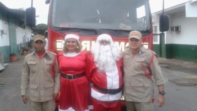 Por mais uma vez, Papai Noel pega carona em viatura do Corpo de Bombeiros Militar para alegrar a criançada