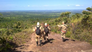 Bombeiros combatem incêndio no Parque Estadual da Serra de Caldas Novas