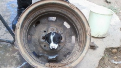 Bombeiros de Cristalina resgatam filhote de cachorro preso em roda