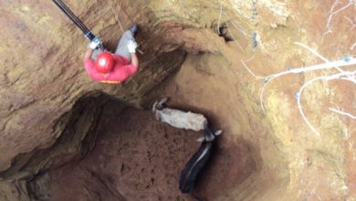 Bombeiros de Posse resgatam duas vacas em um buraco em São Domingos