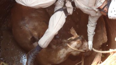 Bombeiros de Trindade realizam retirada de animal em fossa